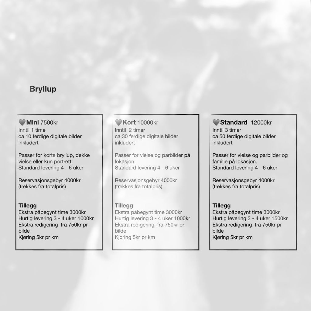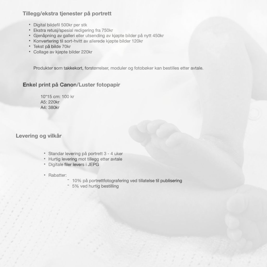 Oppdatert prisliste gjelder for nye bookinger.